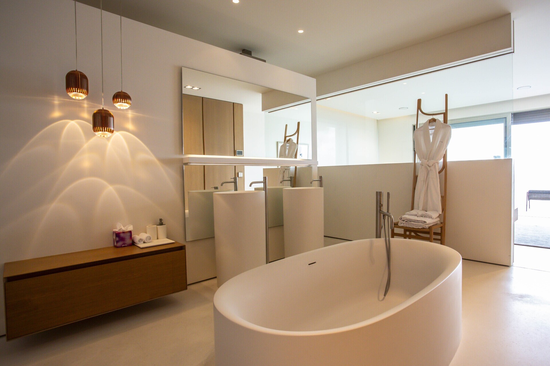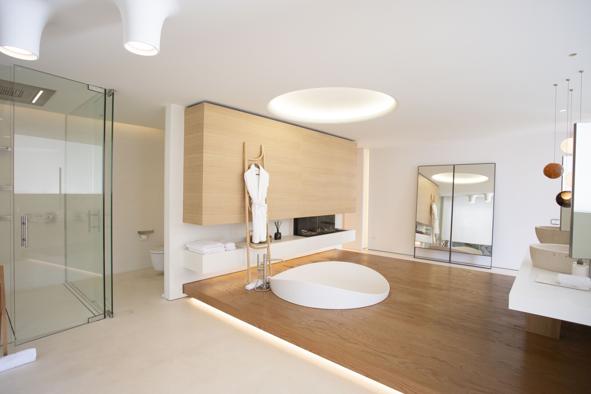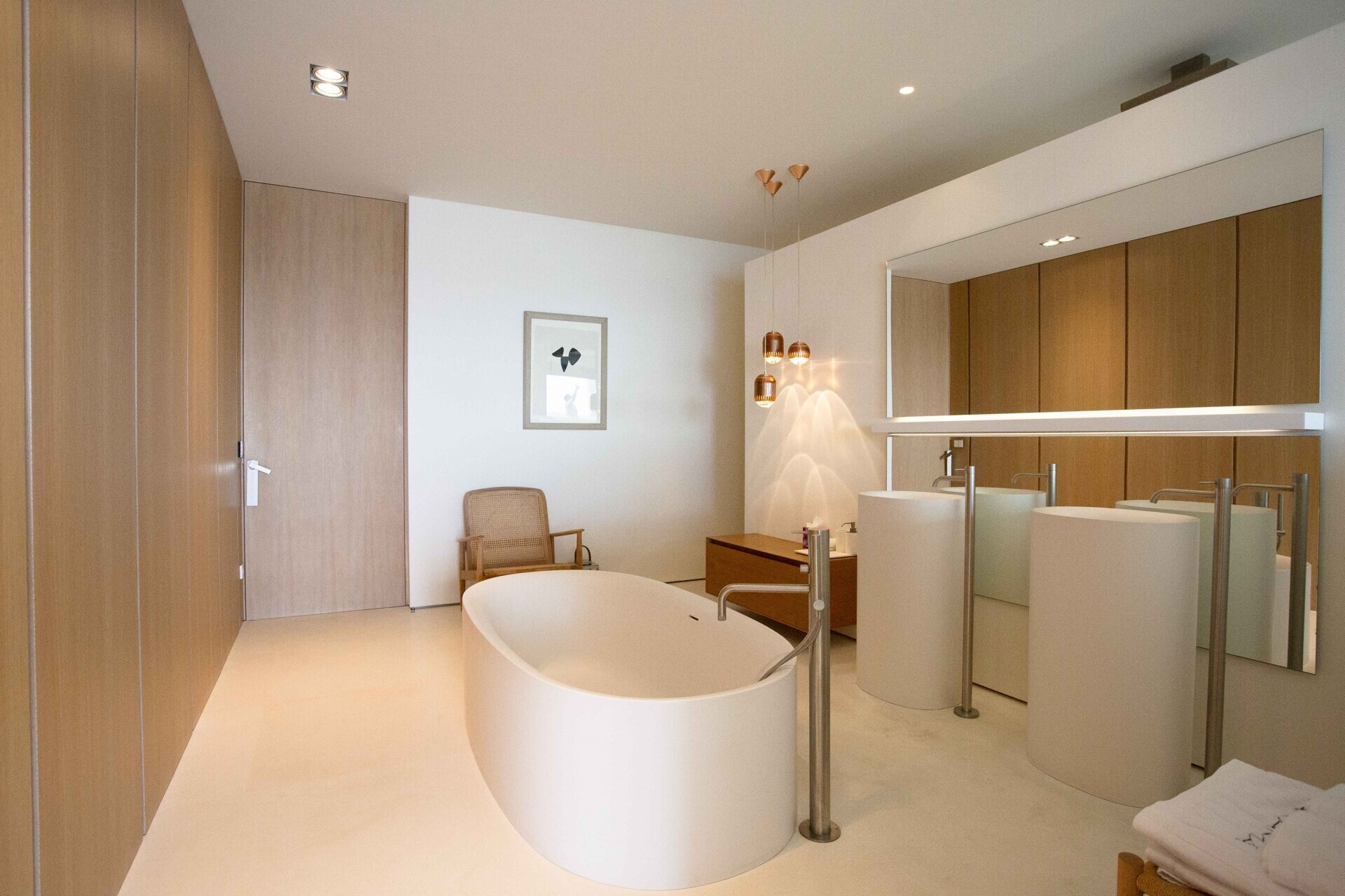 The house integrates a complete private SPA with Finnish sauna, indoor heated pool, massage room and gym. Outside, spacious terraces, a private landscaped garden of over 900 m² and a panoramic pool of 103 m² create an environment of absolute enjoyment and privacy.